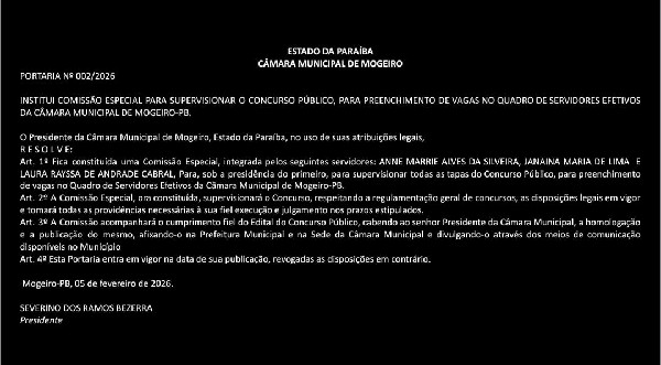 Mogeiro-PB, 05 de fevereiro de 2026.
